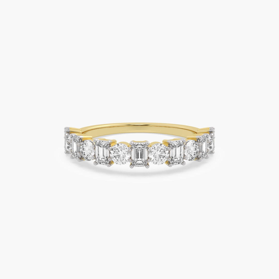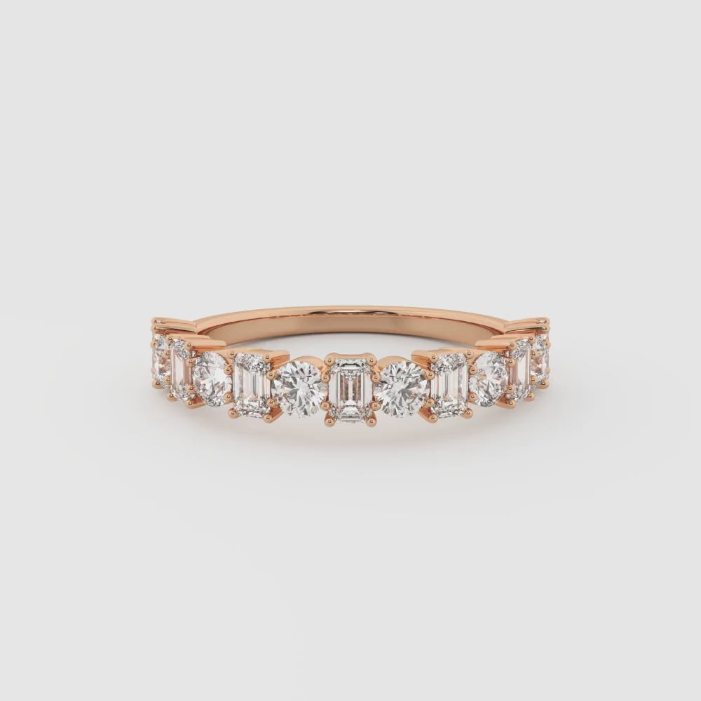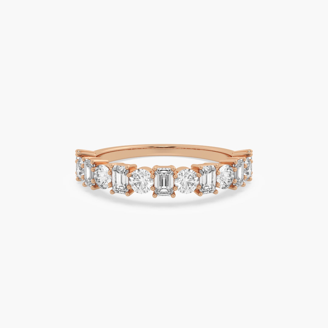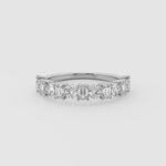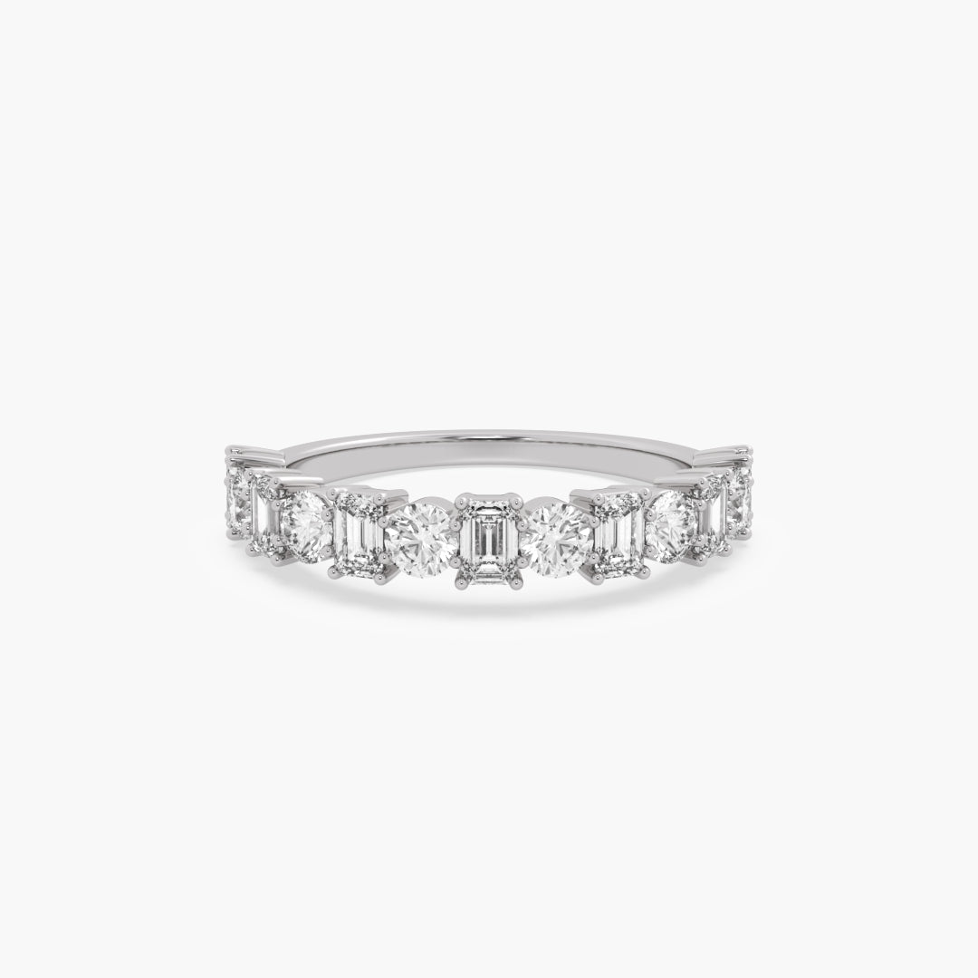 An elegant 14k white gold eternity band featuring alternating emerald-cut and round brilliant lab-grown diamonds, creating a striking rhythm of sparkle and symmetry.