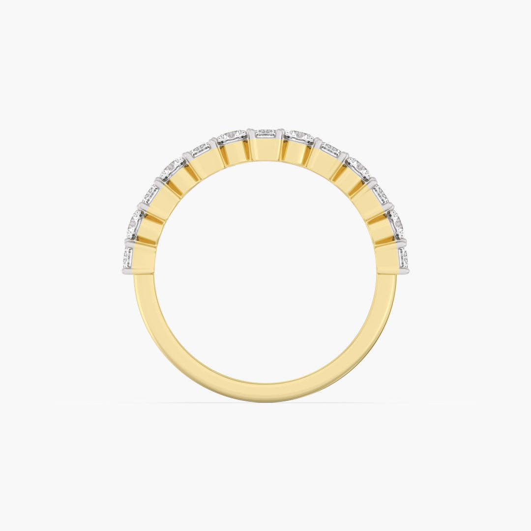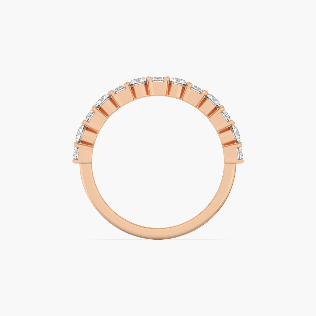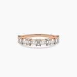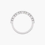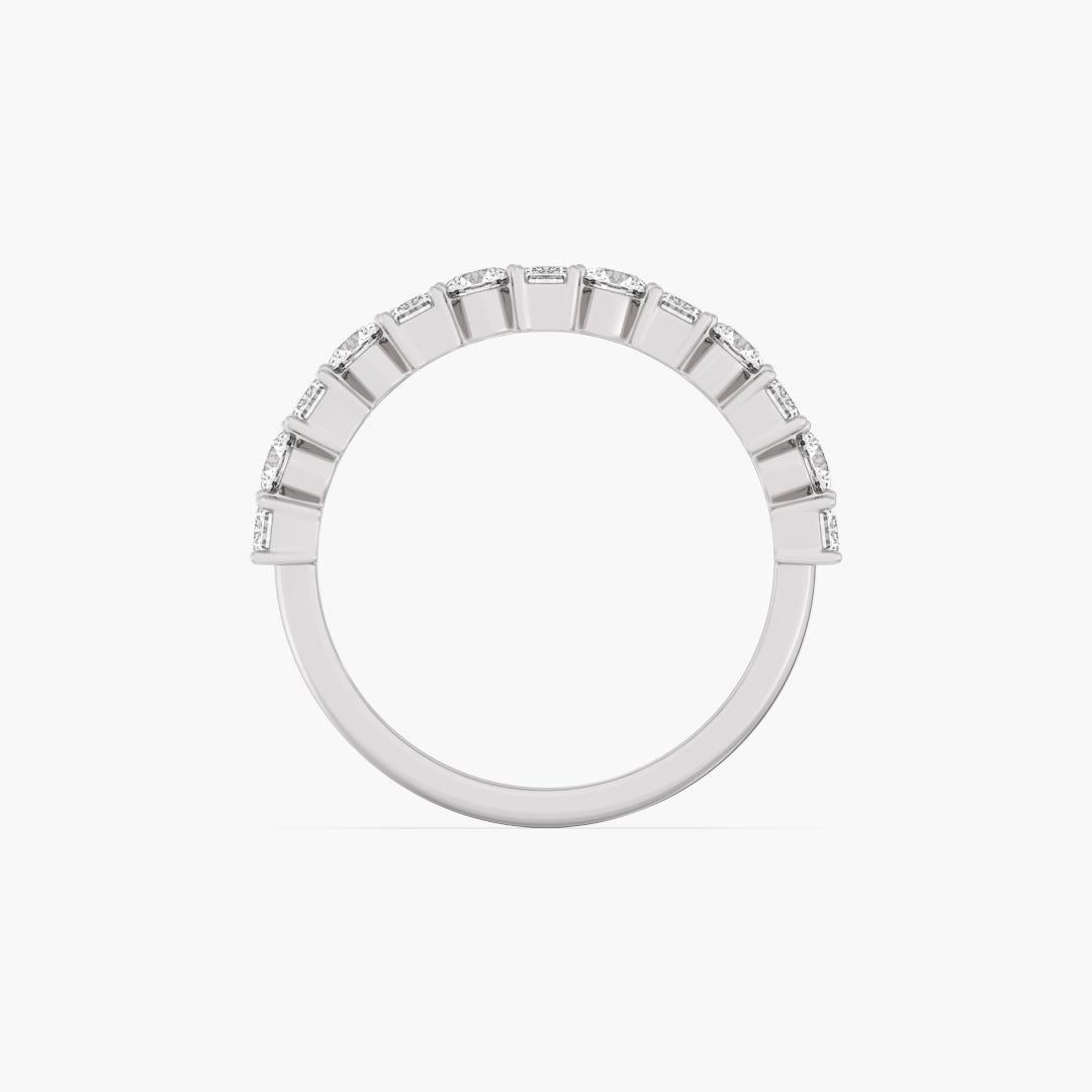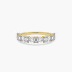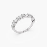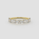An elegant 14k white gold eternity band featuring alternating emerald-cut and round brilliant lab-grown diamonds, creating a striking rhythm of sparkle and symmetry.