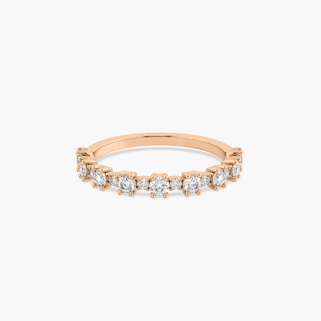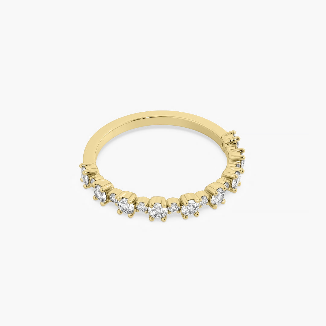 Delicate by design, The Cascade Diamond Band features a sequence of graduated round brilliant Lab grown diamonds, set in polished 14k gold. The subtle taper creates a fluid sense of movement and sparkle — perfect as a wedding band, stackable accent, or a minimalist statement worn solo.