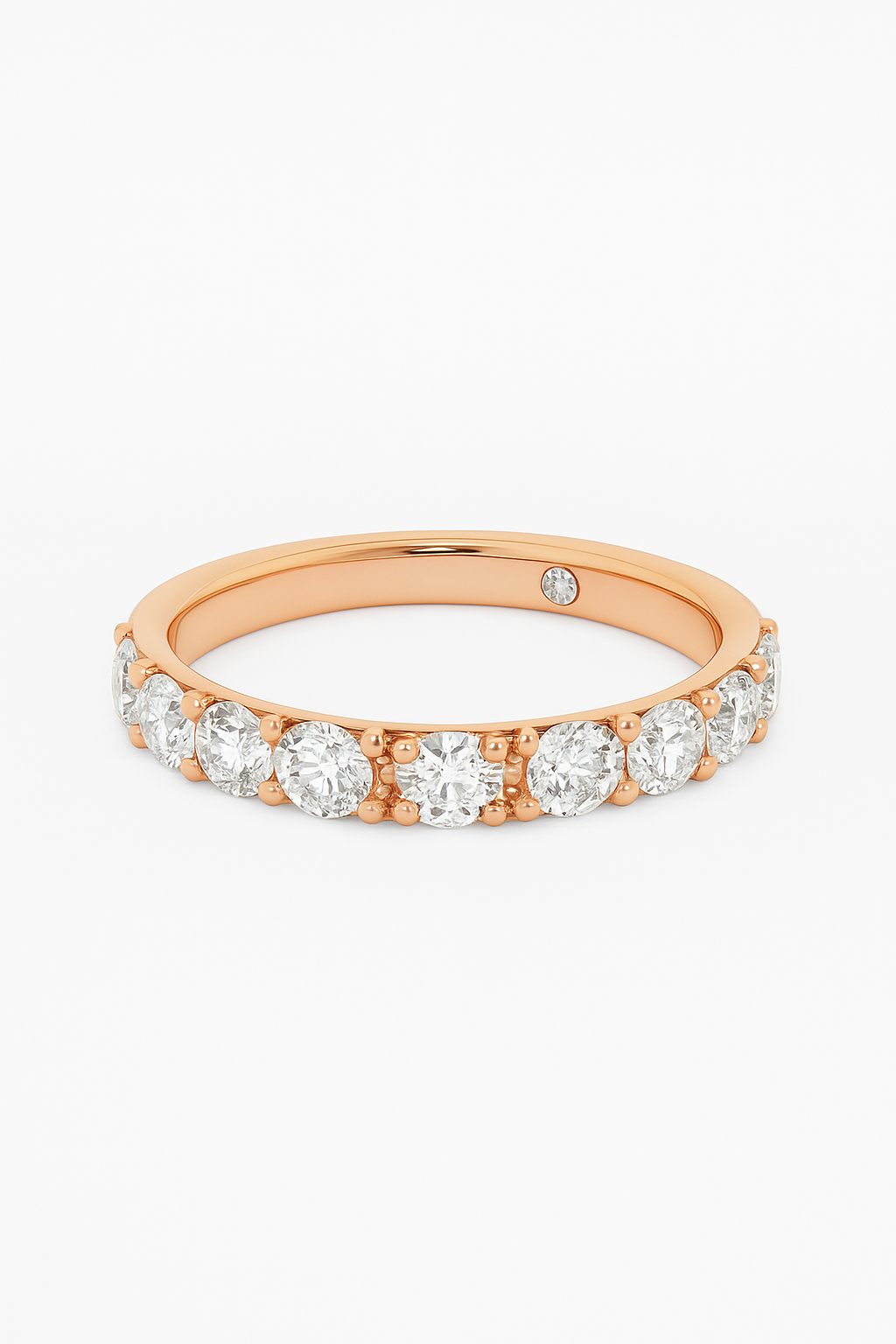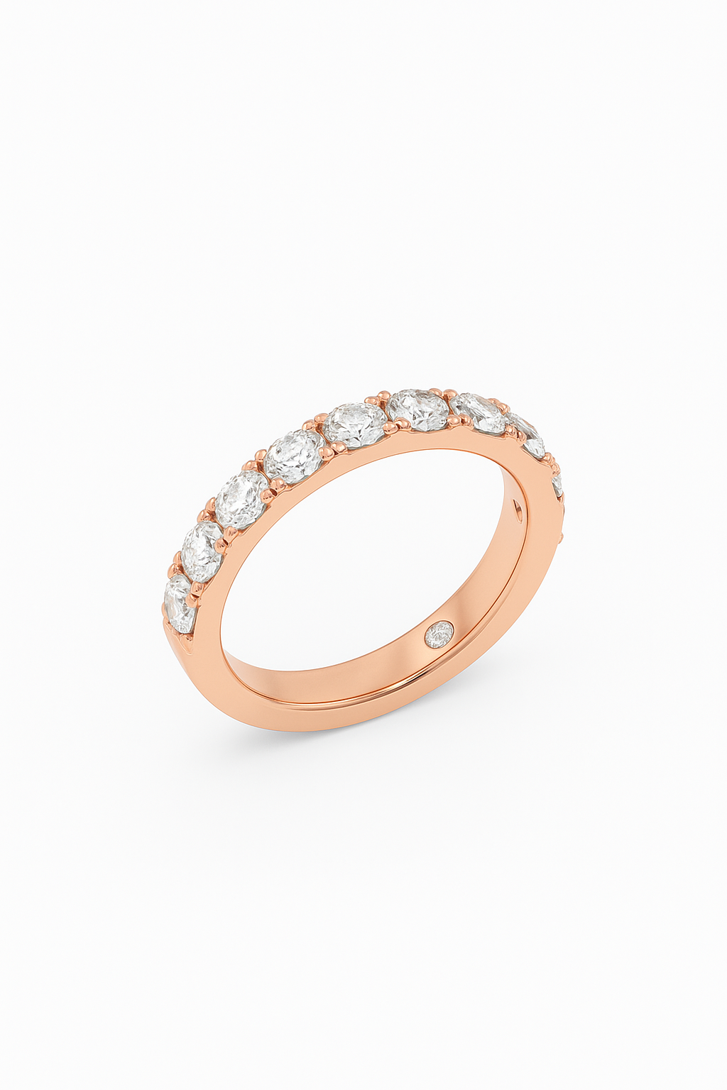 The Classic Half-Eternity Band features a row of round brilliant  Lab grown diamonds, prong-set across the top half of a 14K gold band for timeless sparkle. With a smooth back for easy wear and a clean silhouette, this ring delivers everyday luxury without overstatement.