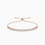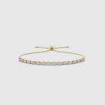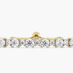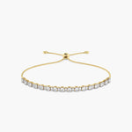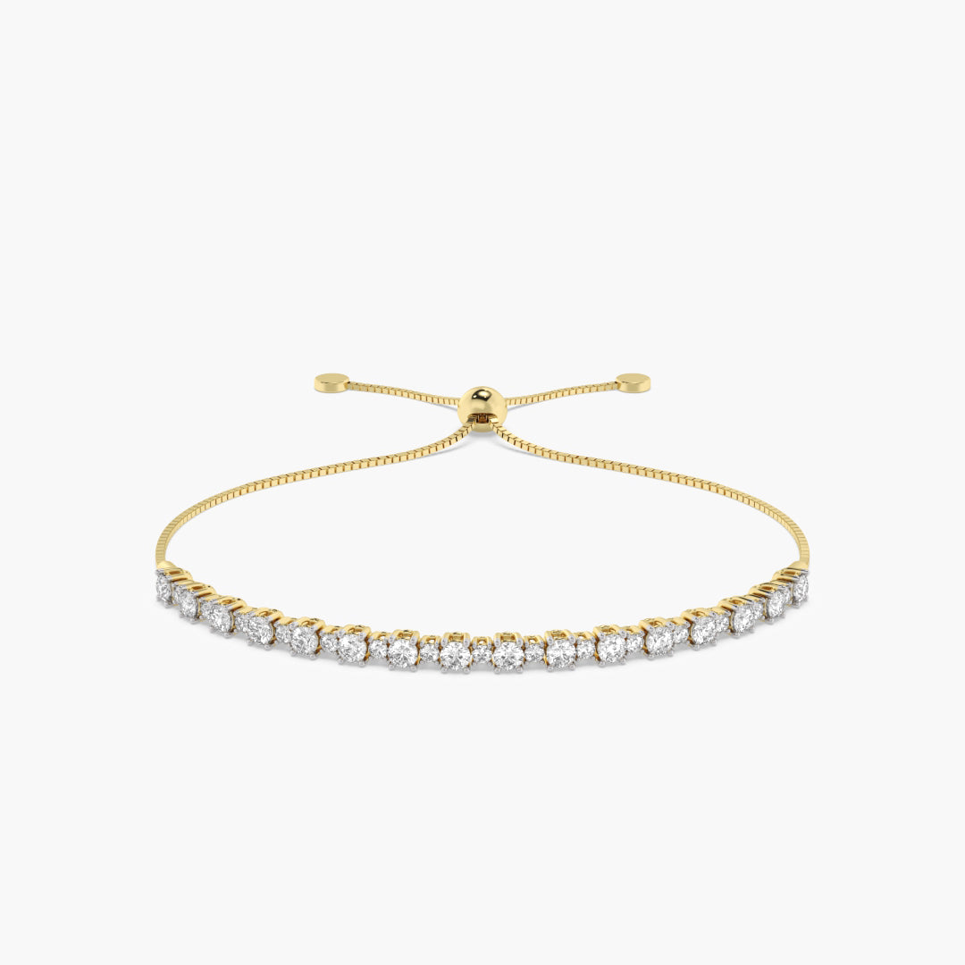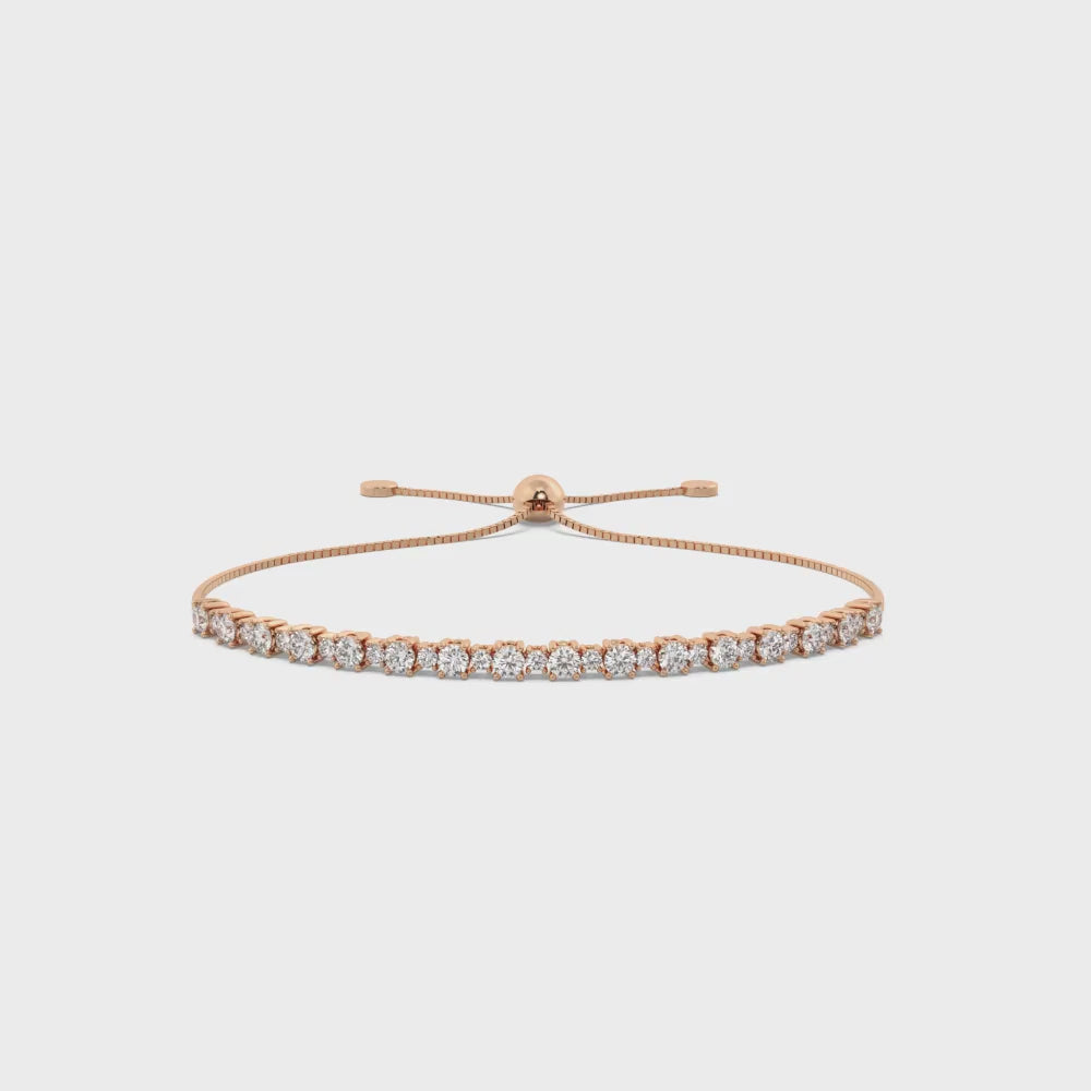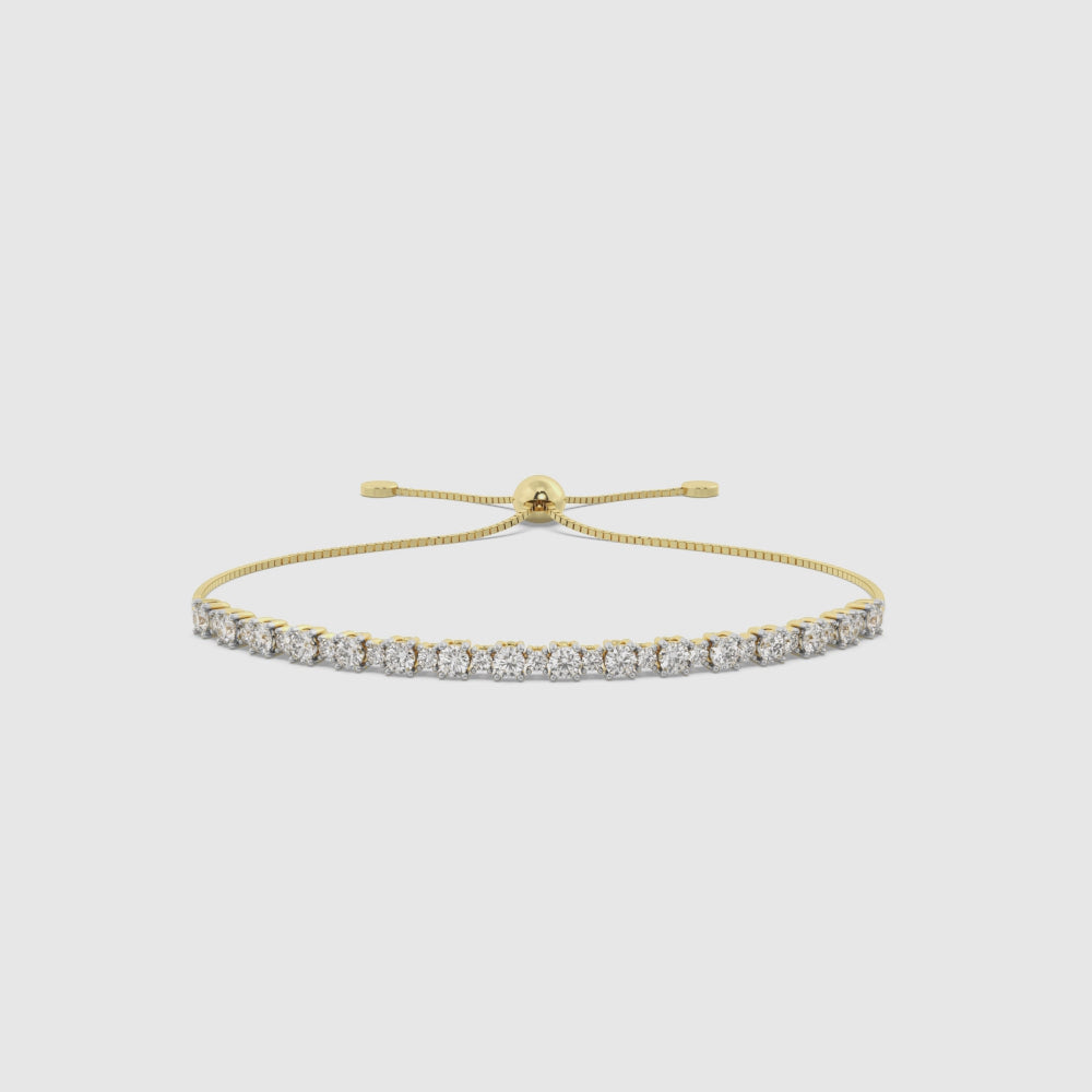 A sleek row of alternating small and big round brilliant Lab Grown diamonds set in 14K gold, finished with an adjustable slider clasp for effortless comfort and a touch of everyday elegance.