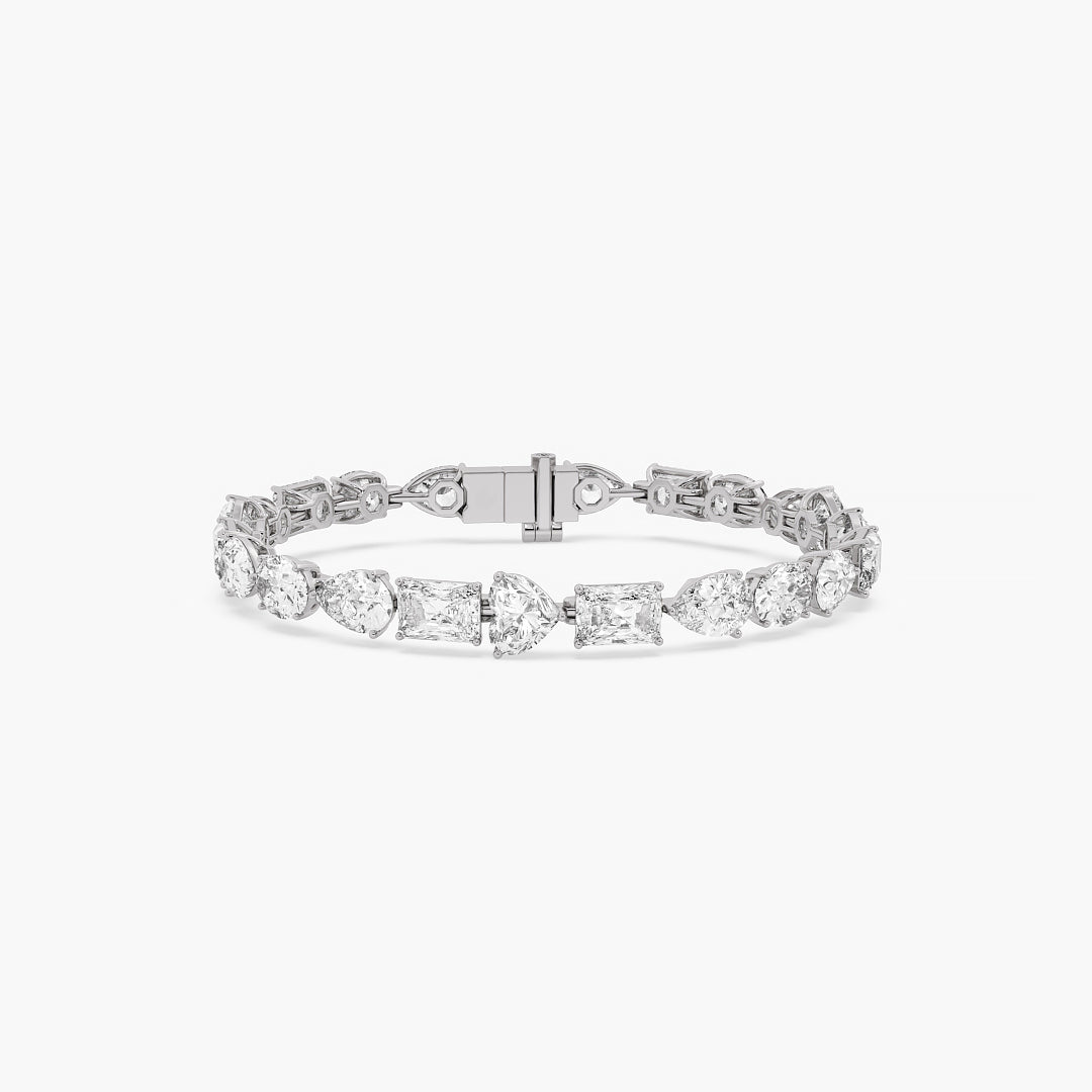 The Sculpted Shapes Tennis Bracelet features a modern mix of pear, oval, emerald, and round lab-grown diamonds, each precisely set in 14K gold to create a rhythm of shape, shine, and structure. Designed for movement, this piece feels both architectural and fluid — a new icon in the world of tennis bracelets.