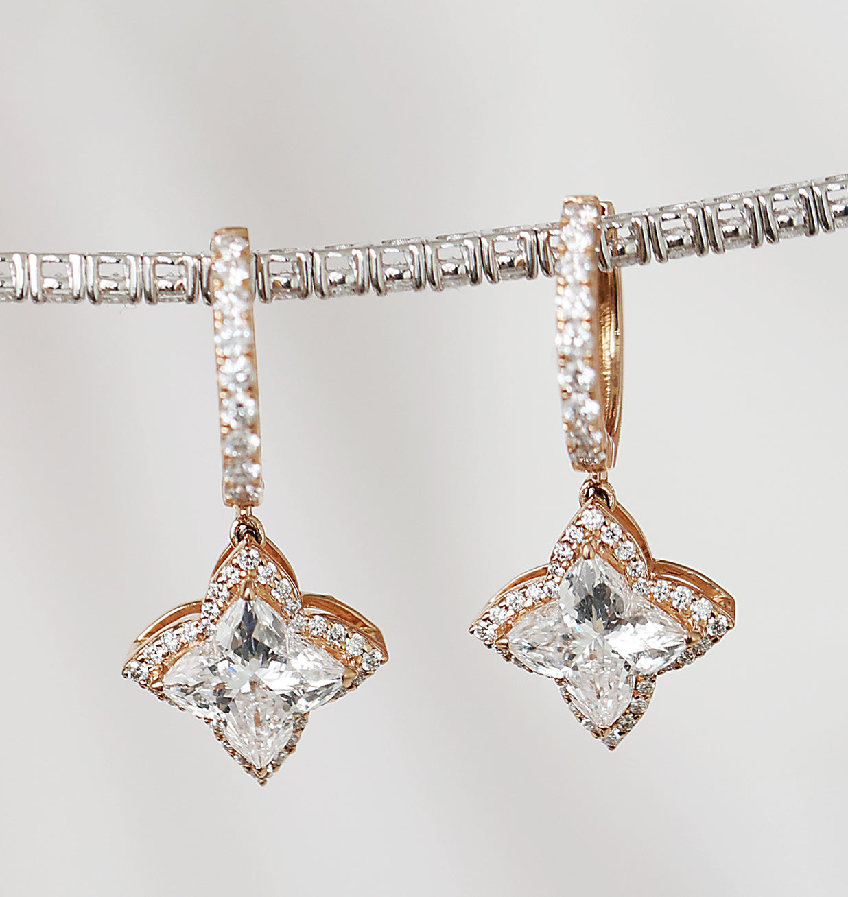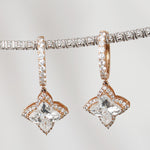 Inspired by the symmetry of floral motifs, the Diamond Fleur Drops feature pavé-set diamond huggie hoops that suspend a delicate quatrefoil-shaped drop. Crafted in 14K rose gold and encrusted with lab-grown diamonds, these earrings bring a soft sophistication that’s equal parts timeless and modern.