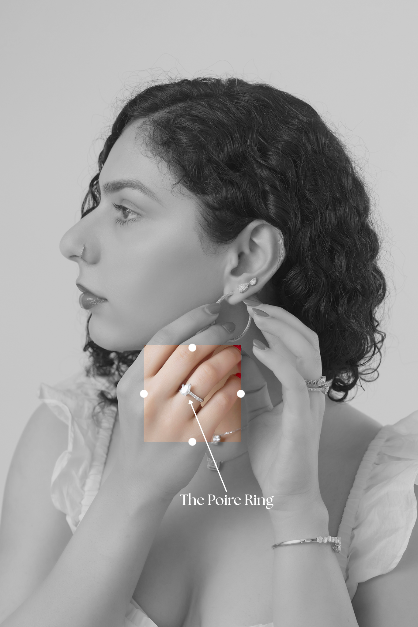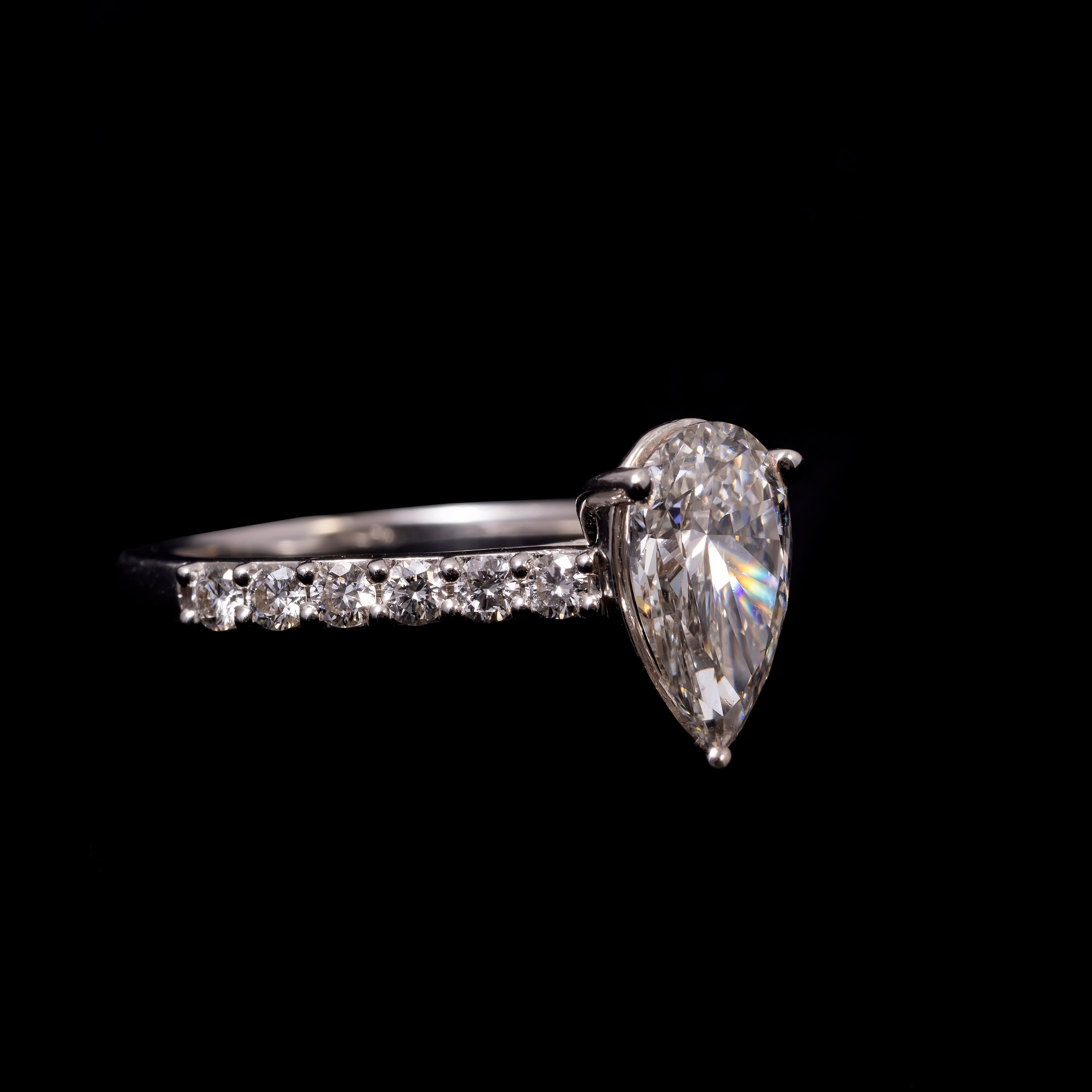 This ring features a brilliant pear-shaped lab-grown diamond as its center, set atop a 14K gold band lined with pavé-set diamonds. A delicate taper meets dramatic sparkle, making it the ultimate expression of elegance — whether worn as an engagement ring or a standout signature.