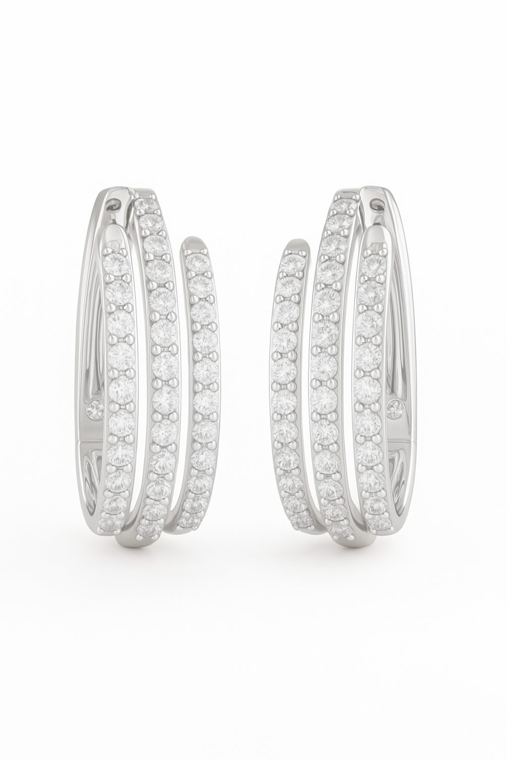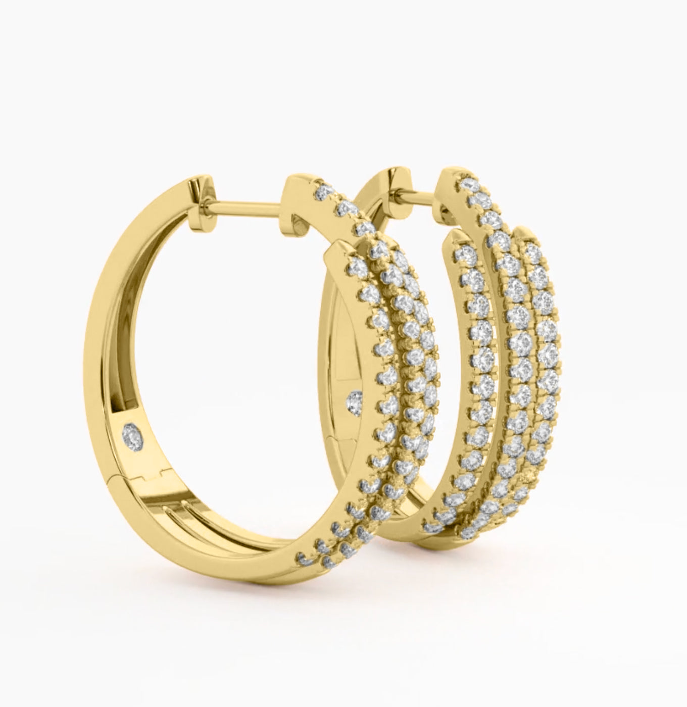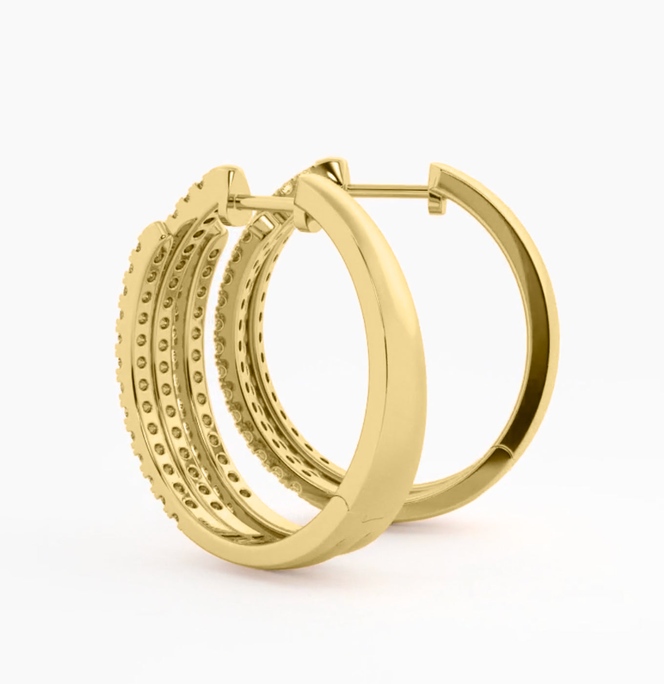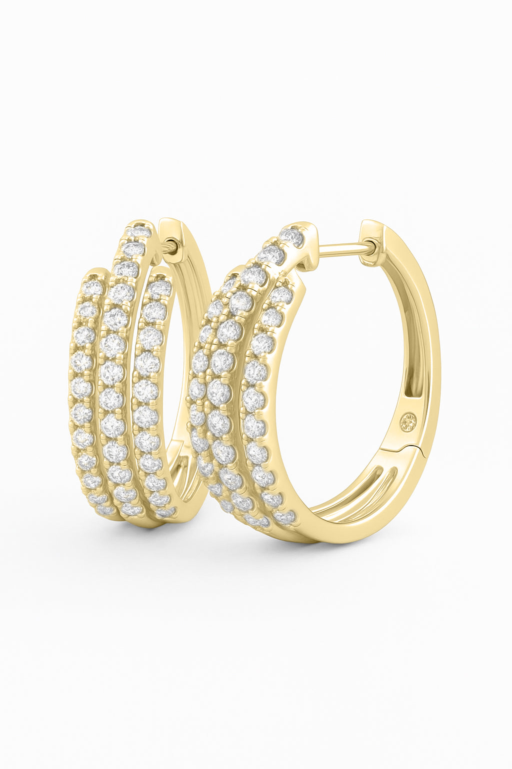 Minimal meets maximal with our Triple Row Diamond Huggies. Designed to give the illusion of a perfectly layered ear stack, these huggies feature three rows of pavé-set Lab grown diamonds. Bold yet lightweight, this piece delivers everyday ease with red-carpet sparkle.