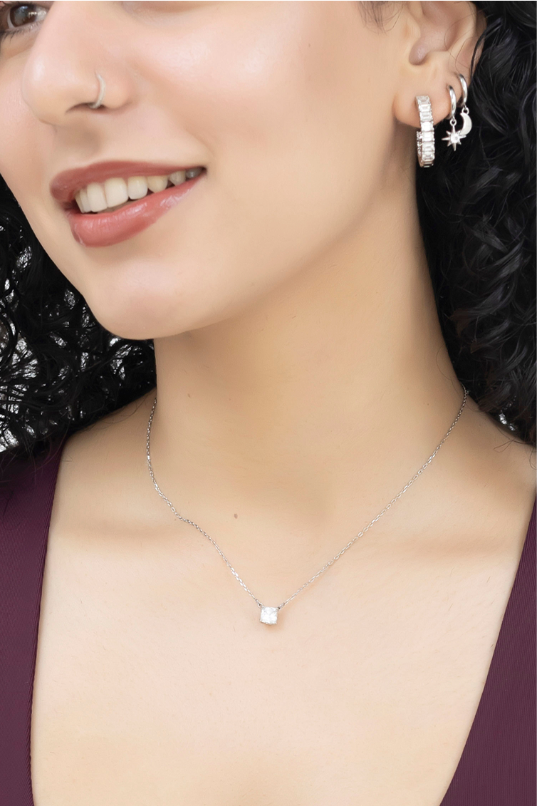 This necklace features a princess-cut lab-grown diamond suspended on a fine 14K gold chain. With clean lines and radiant symmetry, it’s the kind of piece you wear every day — effortless, personal, and always in style.