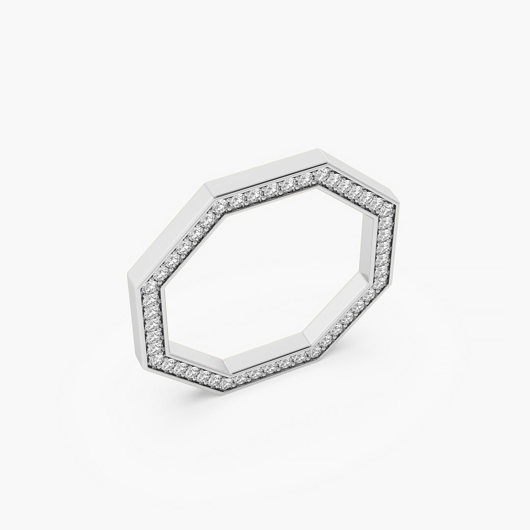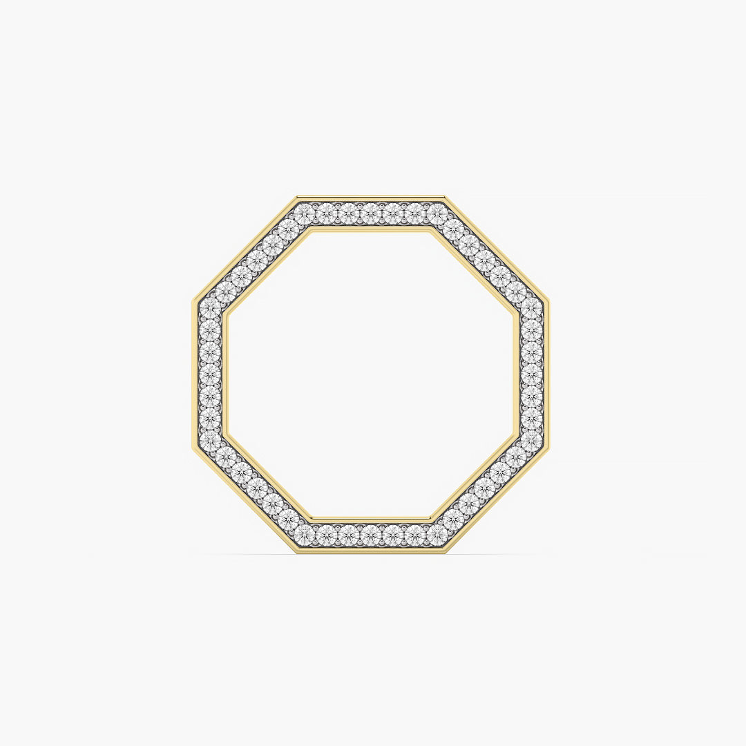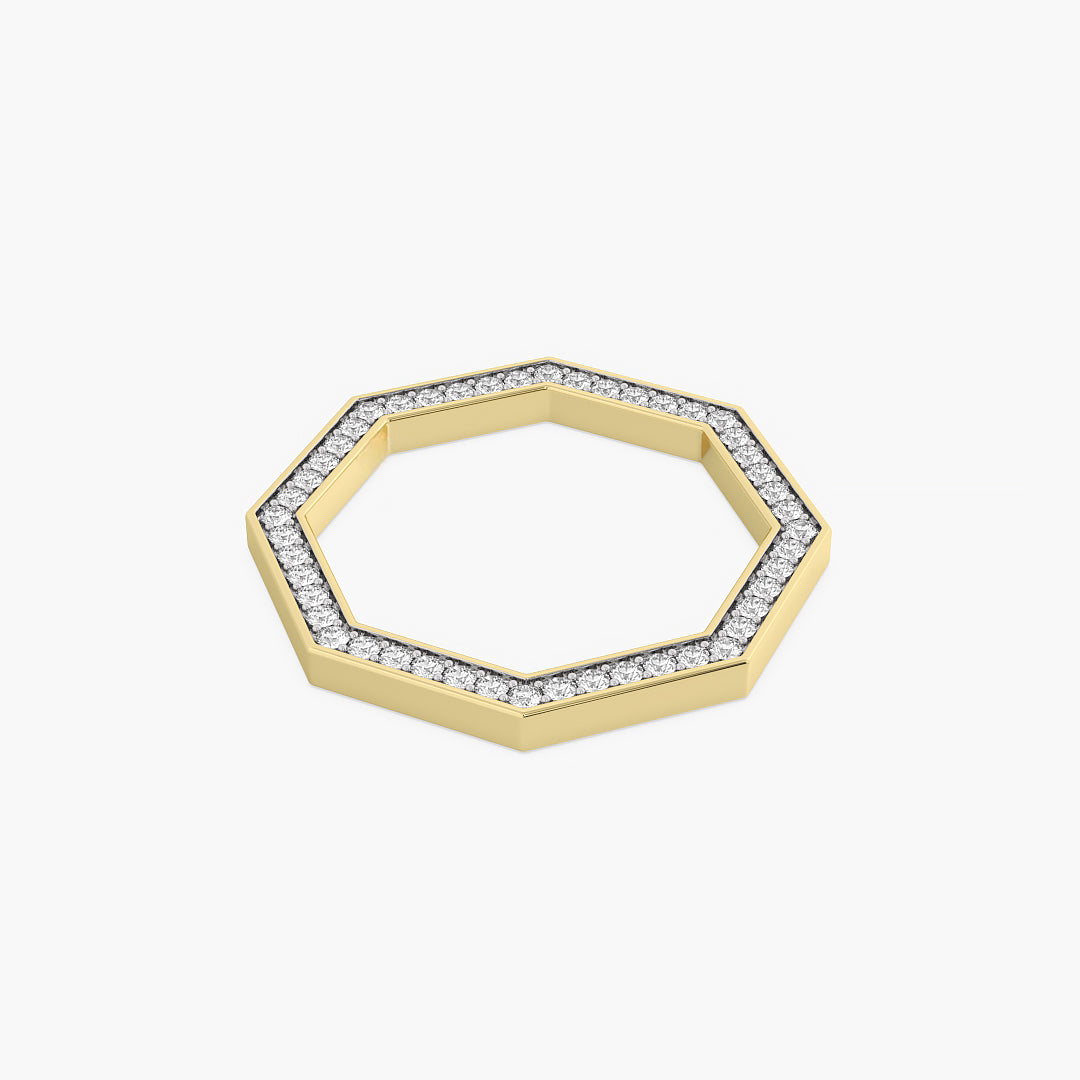 Sharp lines, soft sparkle. The Octagon Pavé Band features a sculptural silhouette crafted in 14K gold, with a precise pavé of Lab grown diamonds lining its inner edge. The flat octagonal shape adds bold structure to your stack while catching light with every flick of your hand.