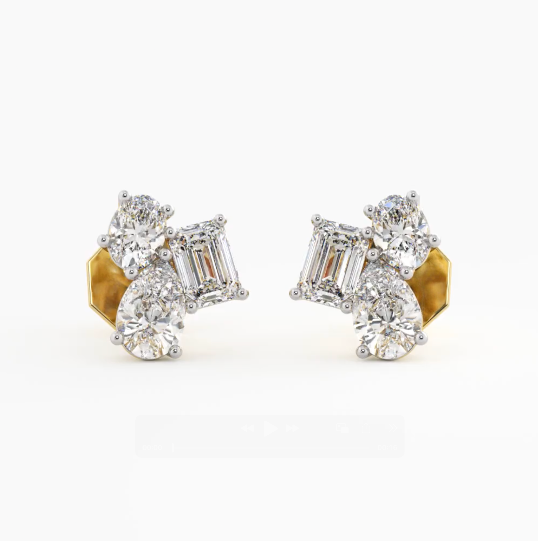 The Clémence Diamond Studs are where classic cuts meet contemporary composition. Featuring a curated mix of pear, emerald, and oval-cut Lab grown diamonds set in perfect asymmetry, these 14k gold studs bring dimension, brilliance, and an effortless sense of refinement