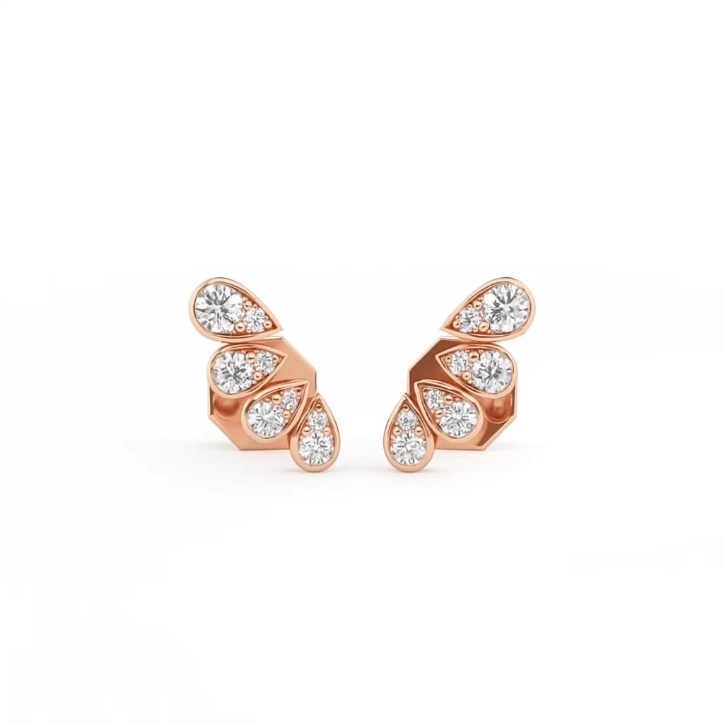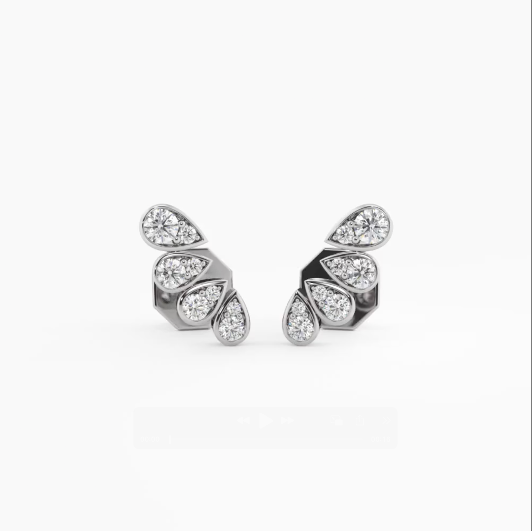 The Vienne Diamond Climber Studs are a sculptural twist on a timeless silhouette. Featuring a graceful sweep of pear-shaped bezel-set Lab grown diamonds that follow the curve of your ear, these 14k gold earrings offer both edge and elegance. Designed to hug the ear for a lifted, luminous look, they’re a statement in refined modernity.