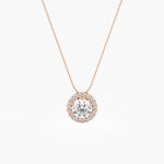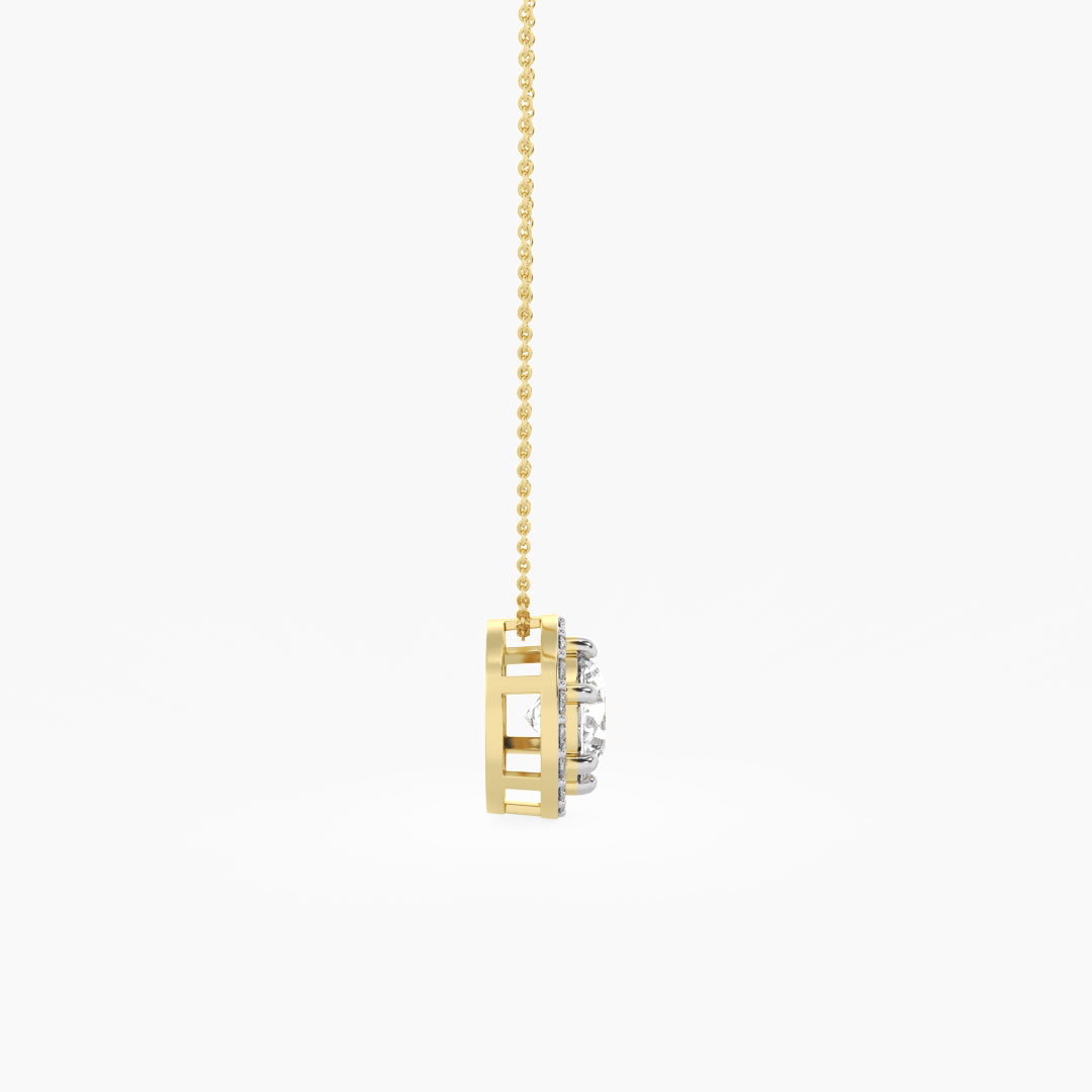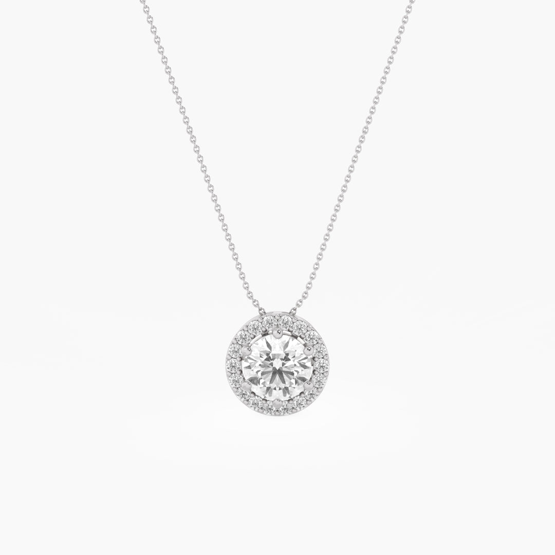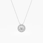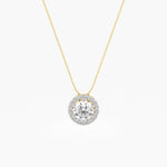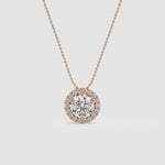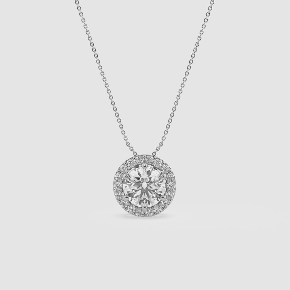 A round brilliant lab-grown diamond centerpiece, encircled by a halo of micro pavé-set diamonds in 14k gold, designed to enhance brilliance and create a radiant, timeless look.