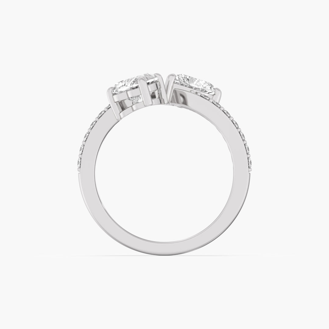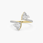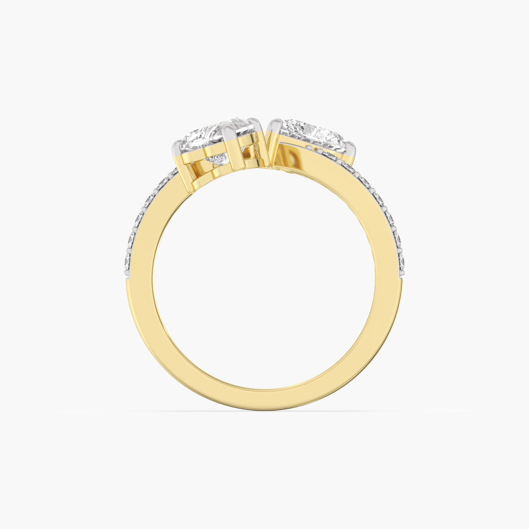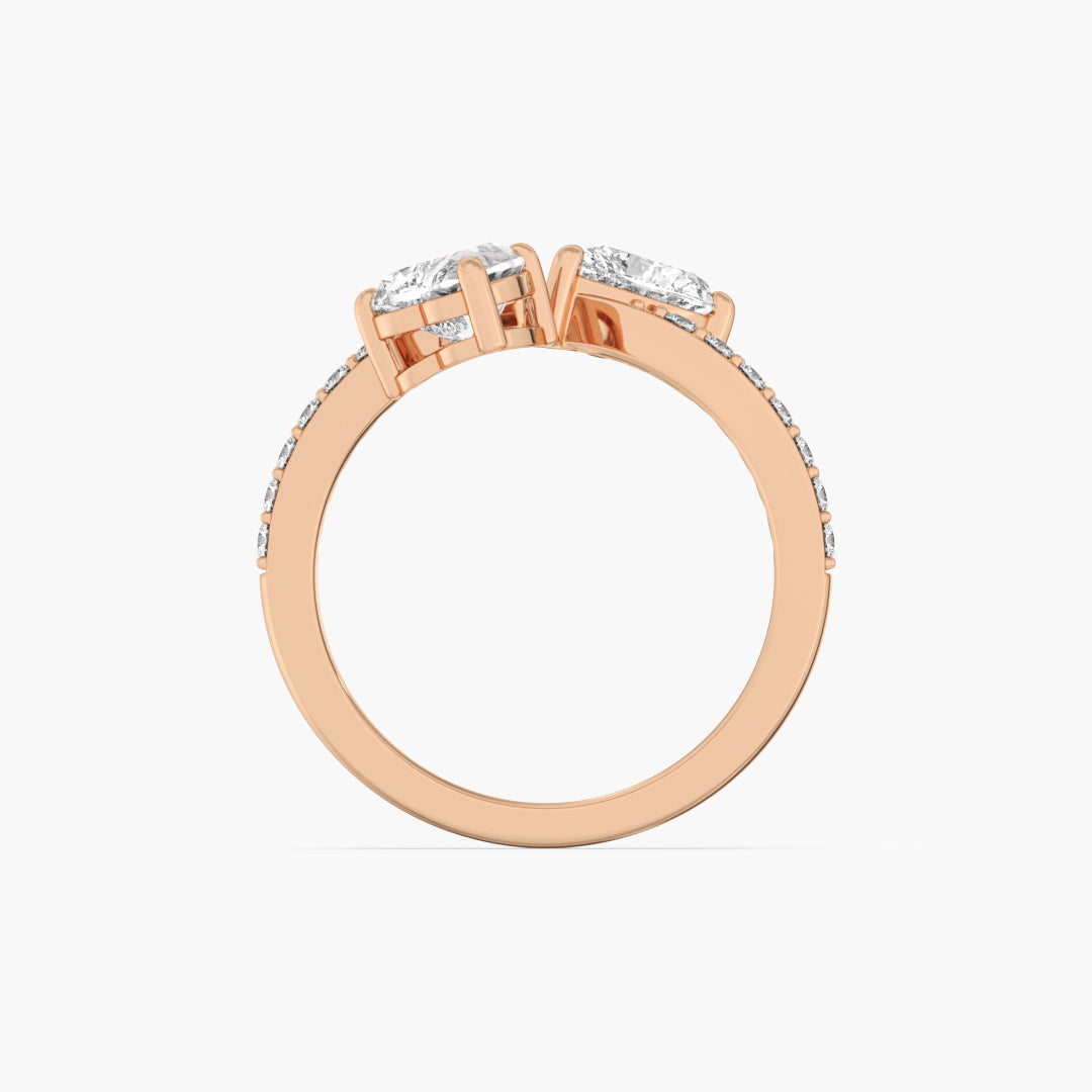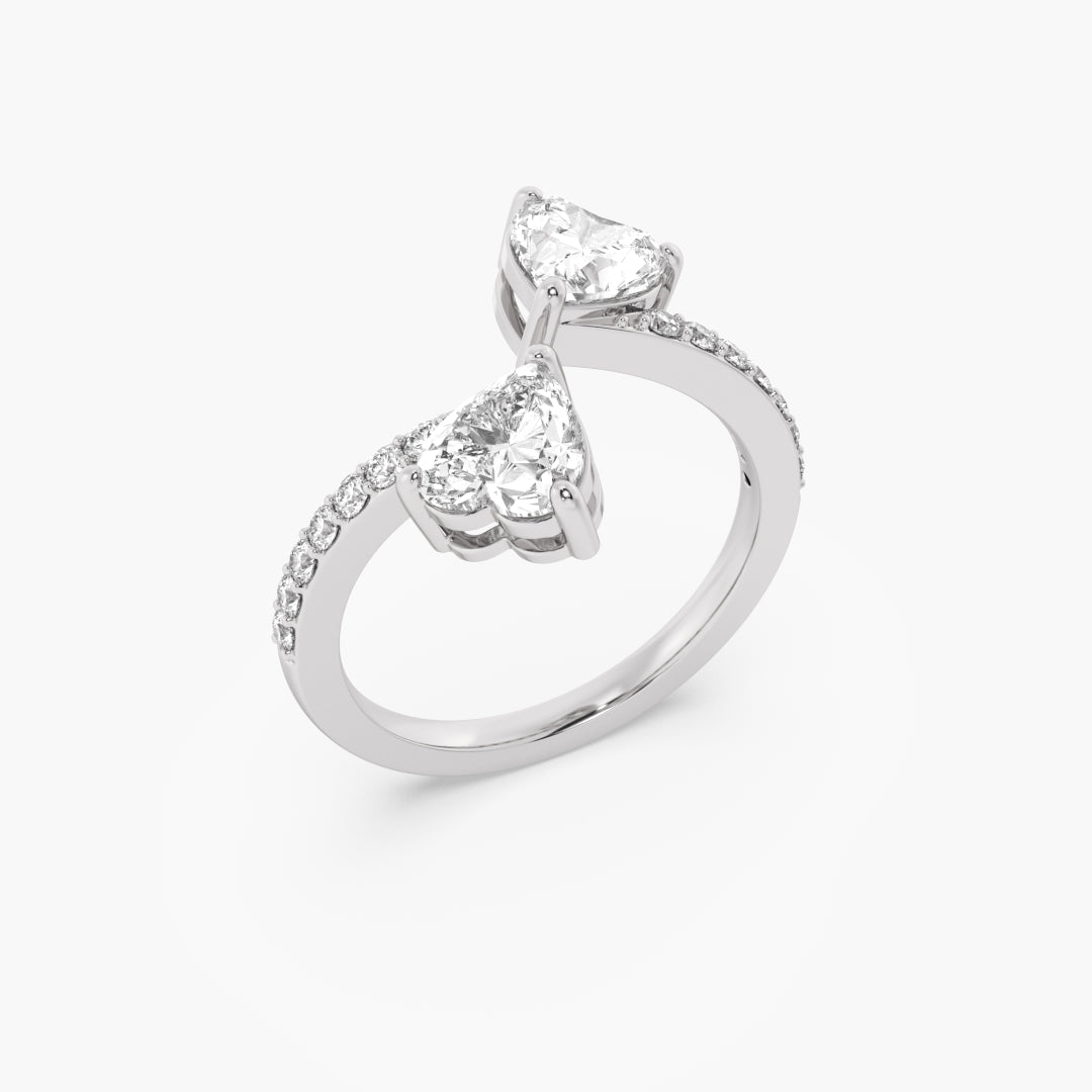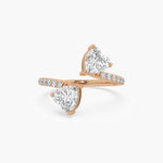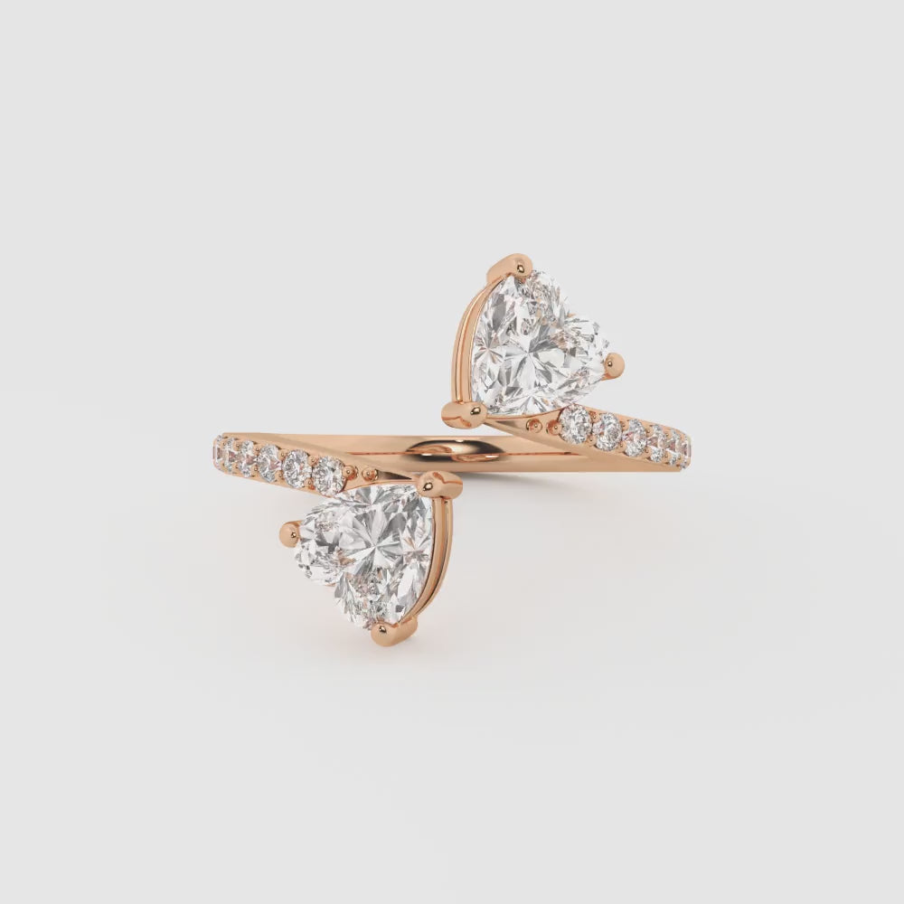 Two heart-cut lab-grown diamonds meet in a sleek toi et moi design, set in 14K gold, blending romance with modern elegance.