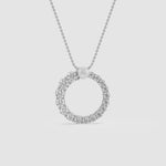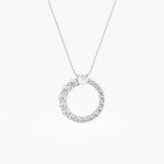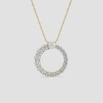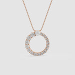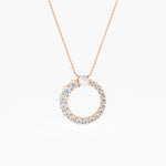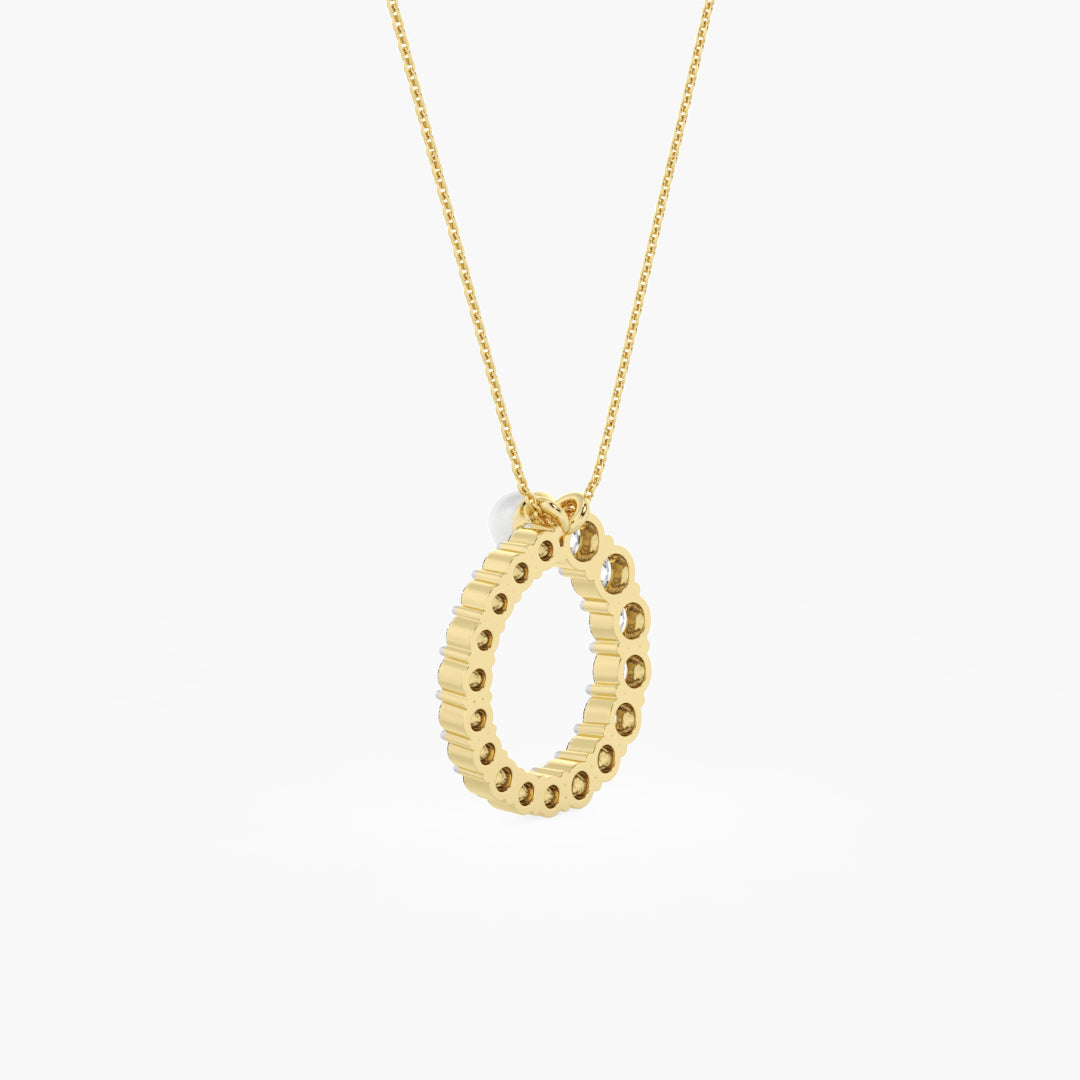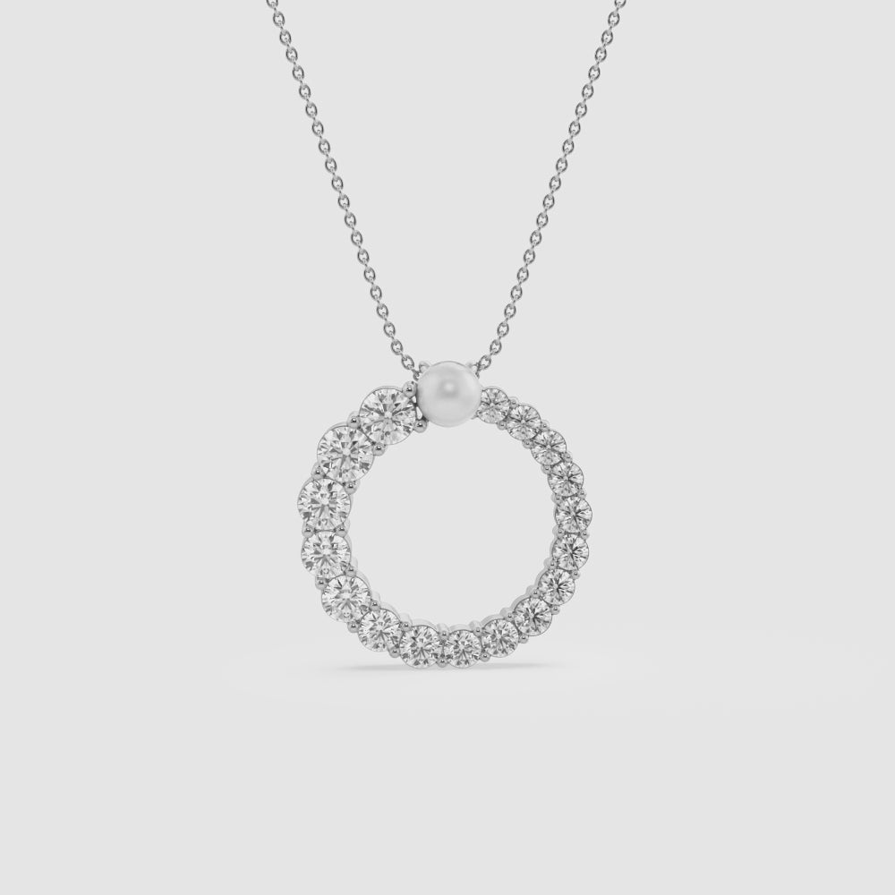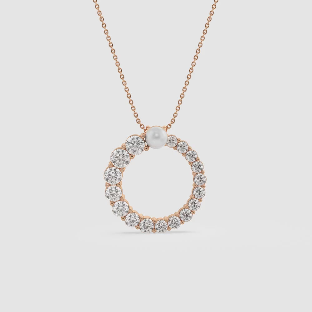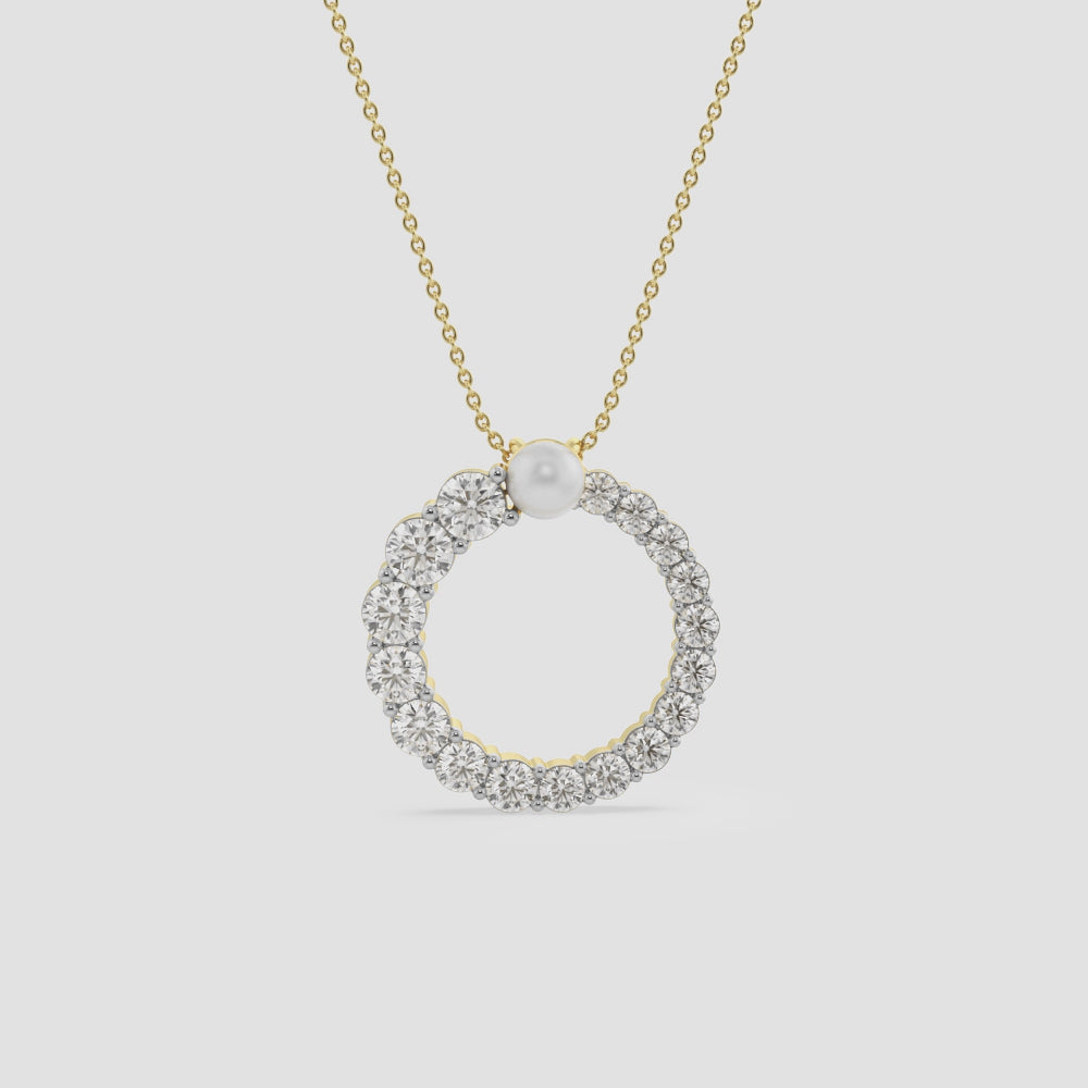 A circle of graduating round brilliant lab-grown diamonds set in 14k gold, crowned with a luminous pearl, suspended from a delicate chain for effortless elegance.